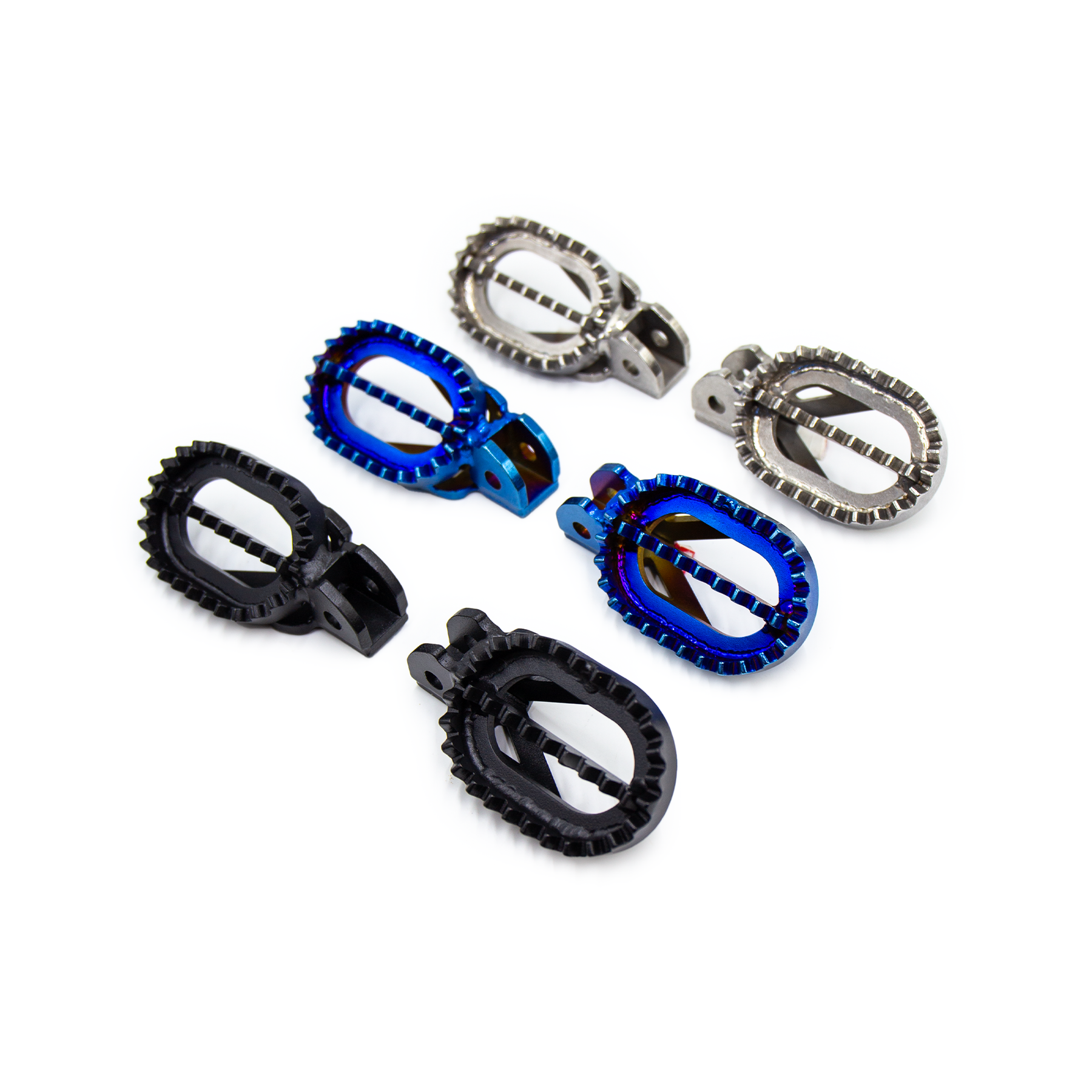 Aluminium footpegs get destroyed on rocks and the pins fall out. They can be a nightmare.